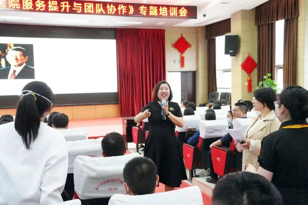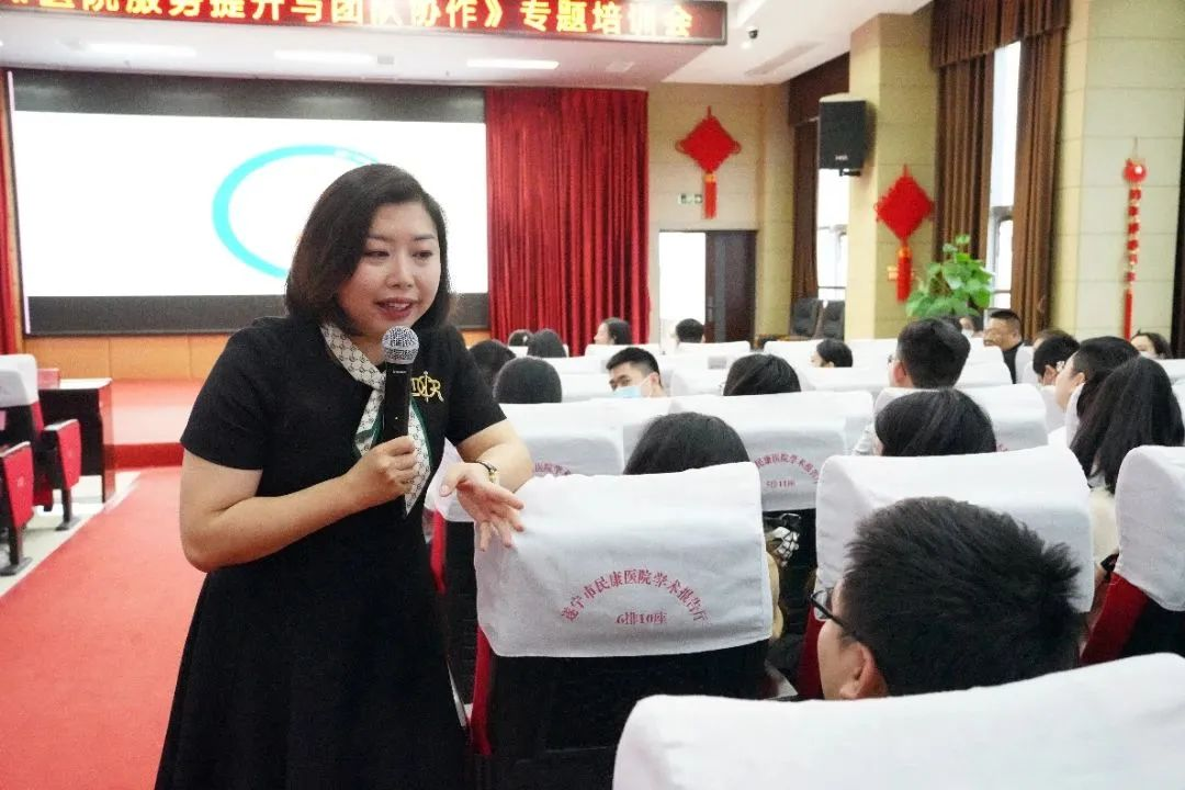 成都西经医院管理研究院的黄韵霖老师围绕《服务提升与团队协作》为主题,从医院日常服务的误区、高质量服务的标准、提升患者满意度的专业服务技巧,各部门树立如何以价值为导向的高效合作模式等进行生动全面讲解。