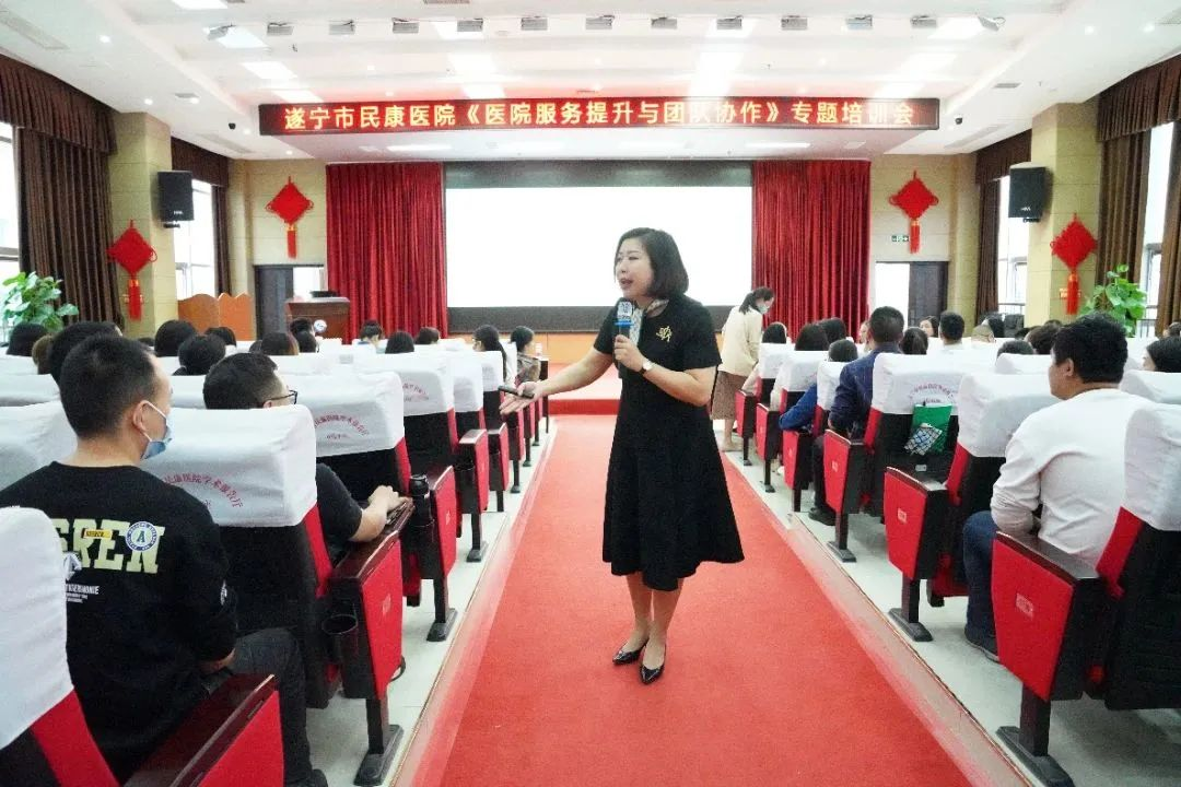 为进一步提高医院服务质量,加强医患沟通技巧,切实提升团队协作能力和凝聚力,推动医院高质量转型发展。4月21日,遂宁市第六人民医院(市精神卫生中心、市民康医院)组织开展《医院服务提升与团队协作》专题培训。