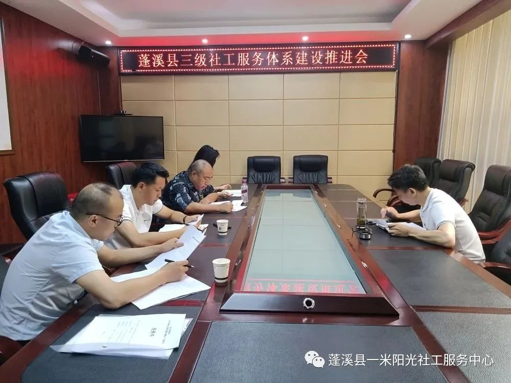 为有效推进2023年城乡社区综合服务“提能力”工程项目工作,创新“五社联动”实践,高质量运行社会工作服务站点,健全三级社工体系建设,扎实开展专业社工服务,培育多元治理主体,不断呈现丰富社工服务场景。2023年7月4日,蓬溪县民政局会同蓬溪县新希望社会工作服务中心、蓬溪县一米阳光社工服务中心、遂宁市船山区大同社工服务中心三方专业服务机构就项目服务内容、服务要求、服务方式等多个方面展开会议,旨在扎实有序推进2023年城乡社区综合服务“提能力”工程项目工作。会议由蓬溪县民政局副局长张鑫主持,相关股室负责人和各机构负责人参会。