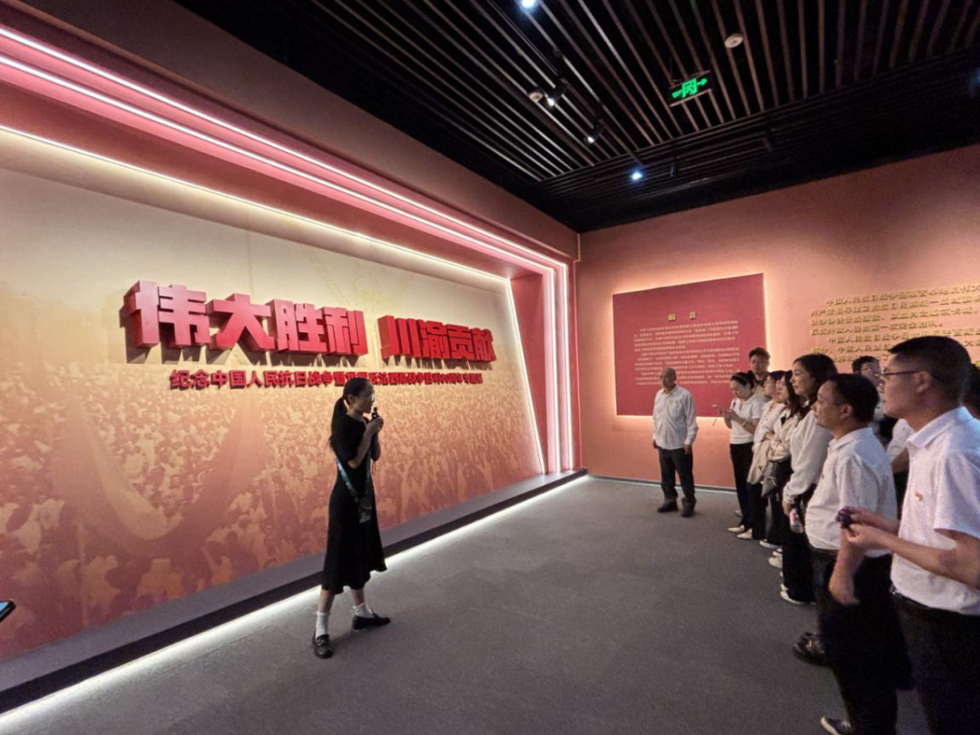 在讲解员的引导下,大家怀着崇敬之心走进展厅,或驻足凝视,或俯身仔细查看档案史料、革命文物等陈列,通过一幅幅图片、一件件文物、一段段影像追寻川渝人民的抗战足迹,感悟伟大抗战精神,汲取砥砺前行的精神力量。在阆中老红军何文元的家书手稿前,泛黄纸页上“为中华民族革命斗争到底”的誓言,让大家深刻体会革命者“忠孝难两全”的家国情怀;1945年《新华日报》《感谢四川人民》社论的巨幅展板前,“三百万征兵、八千万石粮食”的硬核数据,直观呈现了川渝作为抗战大后方的坚实担当;故宫南迁文物康熙款画珐琅盖碗旁,文物工作者冒雪护宝的事迹,生动诠释了危难中守护文明的民族脊梁精神。