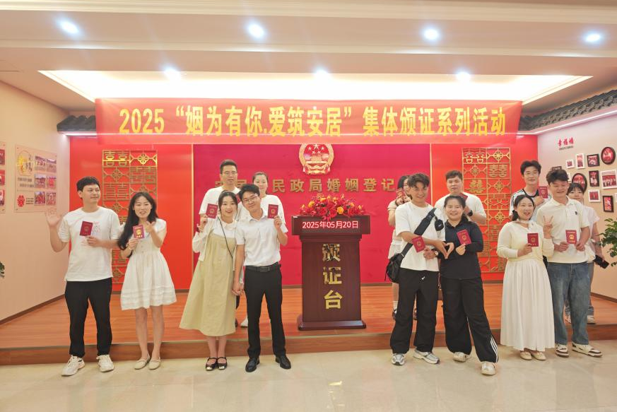 蓬溪县,举办了一场别开生面的 “爱在新时代·简婚传新风”“520”集体婚礼暨颁证仪式,8对新人以简约而不失庄重的中式婚礼共同倡导文明婚俗传递 “重感情、轻形式” 的婚嫁新风尚。