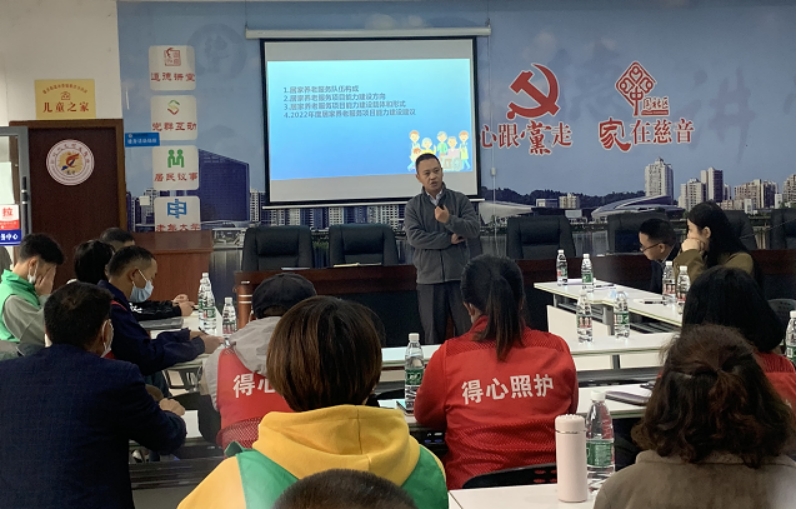 四川岳之恒康养服务有限公司、遂宁得心健康照护有限公司等项目承接机构执行团队20余人参加培训。市社会工作协会做专题辅导。