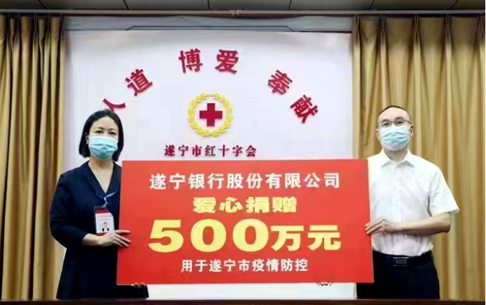 遂宁银行捐赠500万元用于遂宁市疫情防控。