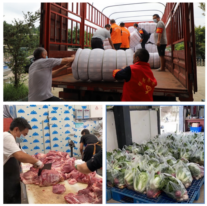 遂宁经开区嘉禾街道明月社区御金山小区益佳鲜超市给小区800户居民每家人免费发放了一袋菜(折价约1万元),由志愿者送到居民家门口。