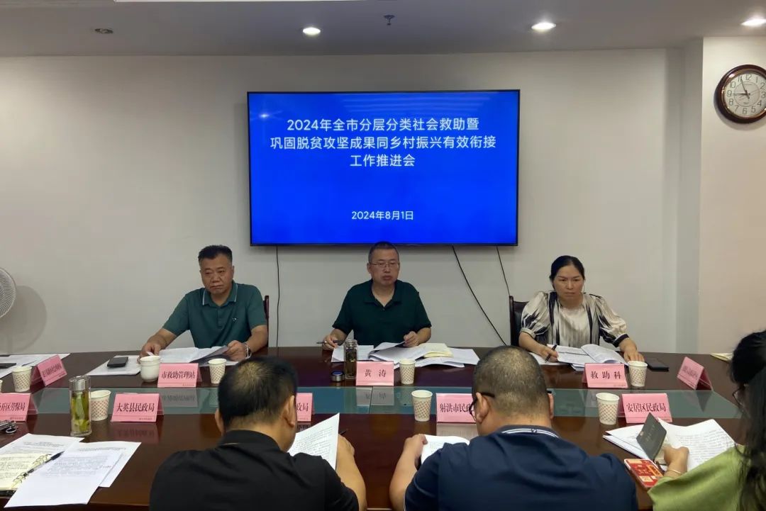 8月1日,遂宁市分层分类社会救助暨巩固拓展脱贫攻坚成果同乡村振兴有效衔接工作推进会召开。市民政局党组成员、机关党委书记黄涛主持会议。