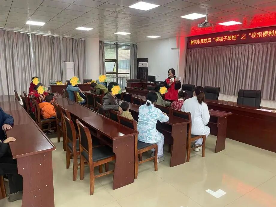 为提升孤独症儿童生活适应与社交沟通能力,11月7日,射洪市民政局以 “幸福子昂娃”为主题,在市残疾人联合会四楼会议室组织开展“模拟便利店小任务”专项活动。本次活动吸引了近20组儿童家庭积极参与。