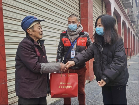 “感谢党和政府的关心,你们真是我们的贴心人!谢谢你们!”家住盐井街道胡家坝社区胡筒里小区的独居老人唐大爷收到“爱心健康防疫包”激动地说。