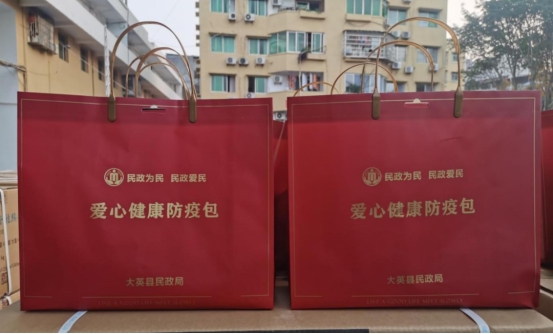 大英县覆盖全县197个村(社区)发放“爱心健康防疫包”4000余套,主要包括常见呼吸道疾病治疗药物和常备防疫物资。为老人发放“爱心健康防疫包”的同时,组织民政专干、社工机构、志愿者等为老年人详细讲解用药说明、发放疫情防控联系明白卡,切实把党和政府的关心关爱送到困难群众心坎上。