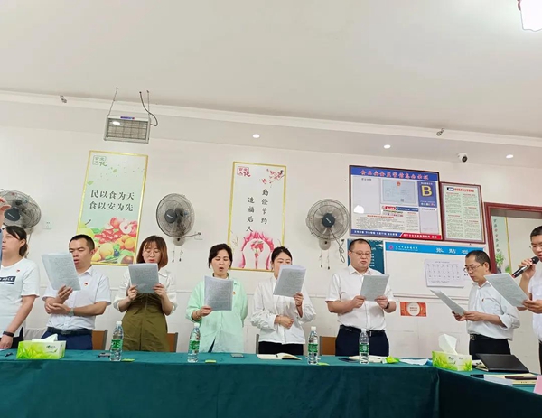 随后全体参会党员一起传唱了经典红歌《没有共产党就没有新中国》和《唱支山歌给党听》。一首红歌诉说着一段历史,一首红歌见证着一段传奇,党员们通过慷慨激昂、振奋人心的歌声来表达对中国共产党百年奋斗历程的崇敬和喜迎建党百年的祝福。歌毕,全体党员重温入党誓词,警醒党员们恪守入党初心,牢记责任使命,筑牢理想信念,锤炼党性品质,全心全意为人民服务。