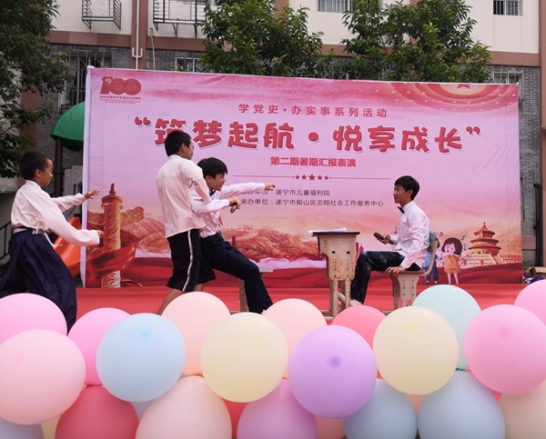 遂宁市儿童福利院深入学习贯彻习近平新时代中国特色社会主义思想,坚持立德树人根本任务,紧紧围绕庆祝中国共产党成立100周年,以“学党史、颂党恩、童心向党”为主题,利用暑假期间,扎实开展“筑梦起航,悦享成长”项目教育实践活动,旨在加强青少年党史、新中国史、改革开放史、社会主义发展史学习教育,激励和引导广大青少年坚定不移听党话、跟党走,把个人理想融入时代主题、汇入复兴伟业,争做德智体美劳全面发展的社会主义建设者和接班人。