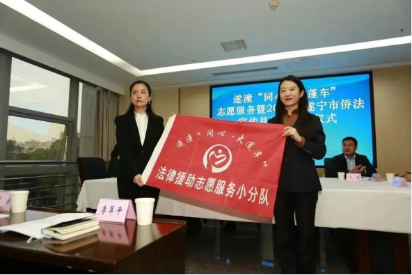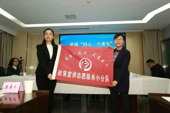 启动仪式上,市侨联主席田碧华宣读了成立遂潼“同心·大篷车”志愿服务队的通知;市委统战部副部长、市侨办主任唐芳,船山区委常委、统战部部长李顺通分别为遂潼“同心·大篷车”志愿服务小分队进行了授旗;发现(遂宁)律师事务所主任崔清代表志愿服务队作了发言。