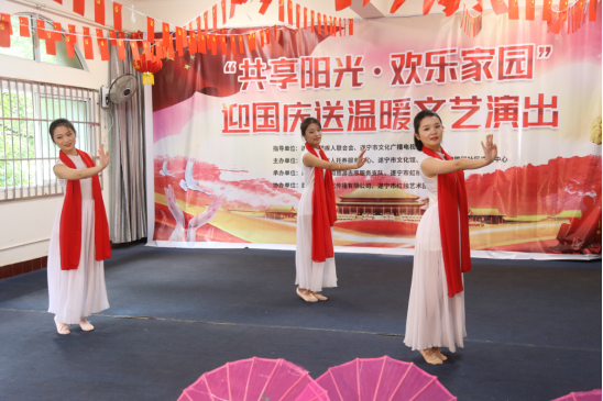 金秋时节,秋高气爽。9月28日,“共享阳光 欢乐家园”迎国庆送温暖文艺演出活动在遂宁市精神障碍社区康复中心拉开帷幕,活动现场歌声嘹亮,热闹非凡,大家一起挥舞红旗、高唱红歌,表达对祖国母亲的美好祝愿。