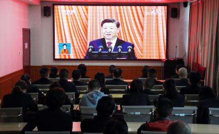 会上,大家以高度的政治觉悟,严肃认真的态度,一边收听报告,一边认真记录,并不时随着银幕发出阵阵掌声。