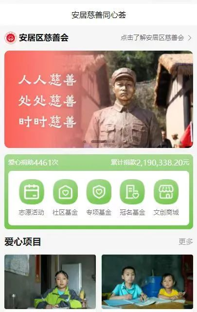 三是撬动网络资源增效。创新“互联网+金融”模式,率先与遂宁银行联合,开发集在线求助、慈善捐赠、实物变现等于一体的“安居慈善同心荟”小程序,发布项目5个,募集资金710余万元,实现慈善资金募集多元化、银行公益营销互利互惠。