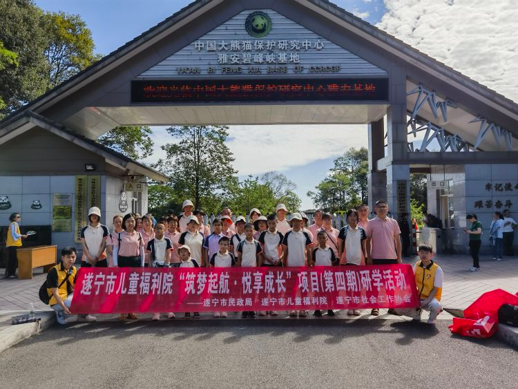 为让儿童福利机构内儿童在暑期实践活动中增长知识、开阔视野,感悟中华文化的博大精深,坚定文化自信。遂宁市儿童福利院于2023年7月上、中旬到中国大熊猫保护研究中心雅安碧峰峡基地和眉山市三苏祠开展“感知国宝魅力 感悟文化自信”研学活动。