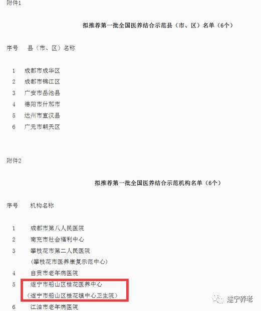 四川省拟推荐第一批全国医养结合示范机构名单的公示!遂宁上榜!