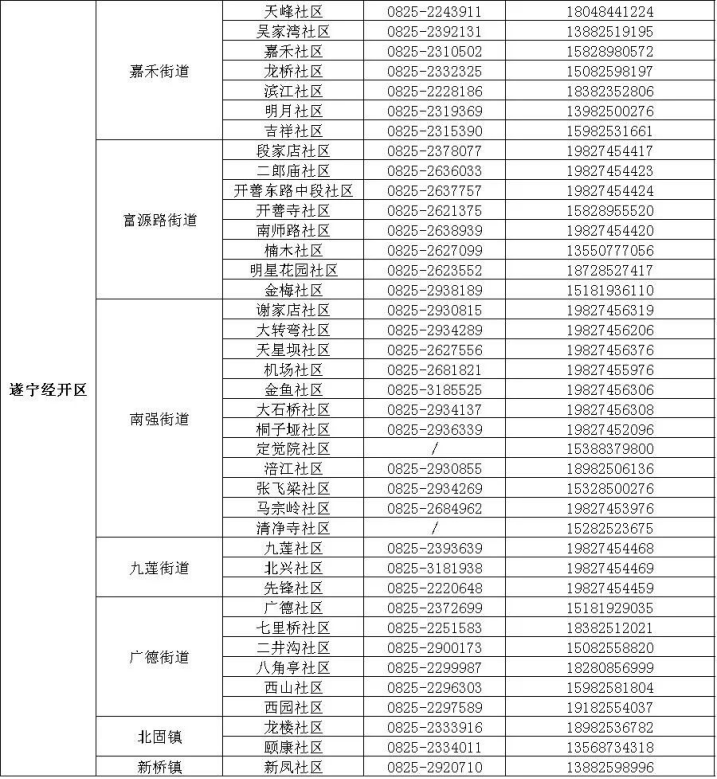 部分社区报备电话变更啦!现将全市336个社区报备电话重新公布如下快@给周围的人知道~来(返)遂人员请密切留意,严格遵守相关疫情防控政策,同心战疫,切勿大意!