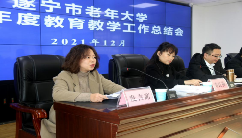 12月20日,遂宁市老年大学召开了2021年度教学工作总结会。市民政局党组成员、市老年大学校长蒋林松出席会议并讲话。副校长邓艳同志主持会议,学校职工、全体教师、分校校长和各教学班班长共计130余人参加会议。