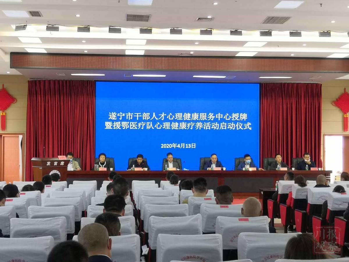 4月13日,遂宁市干部人才心理健康服务中心授牌暨援鄂医疗队心理健康疗养活动启动仪式在遂宁市民康医院、市精神卫生中心举行,标志着遂宁干部人才心理健康服务工作逐渐迈入阵地化、规范化、专业化轨道。