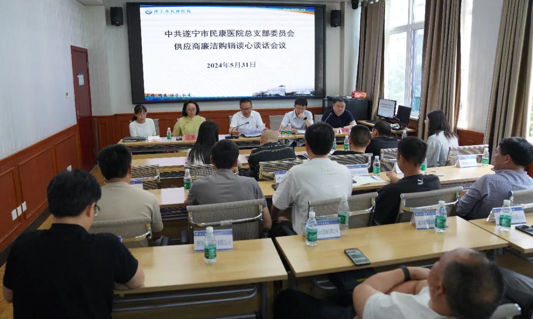 为进一步加强党风廉政建设,推进反腐倡廉,规范医院医药产品、医疗器械、物资供应、食品食材、招标代理等购销行为,维护医院廉洁环境。日前,遂宁市第六人民医院(市精神卫生中心、市民康医院)召开供应商廉洁购销谈心谈话会议。