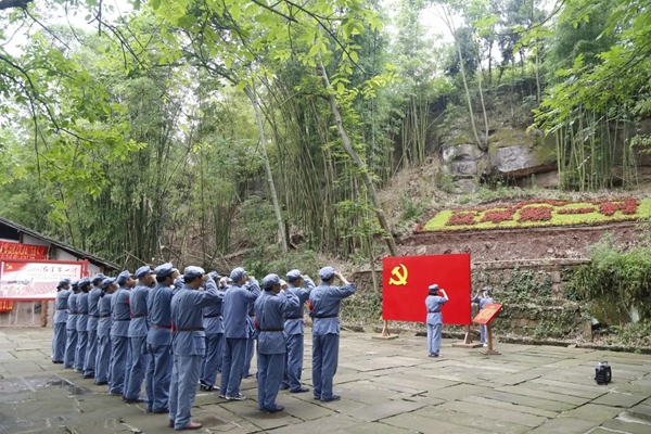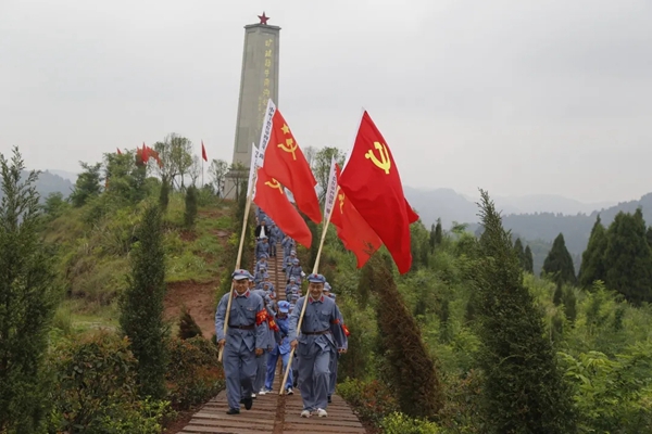 随后全体人员循着革命先烈走过的足迹,唱红歌、急行军,重走长征路,参观了蓬溪起义牛角沟陈列馆、指挥部旧址,学习红船精神,感受红军餐,缅怀先辈伟绩风骨,加深了对中国革命奋斗史和伟大精神的认知与理解,自觉提升了党性修养。在旷继勋牛角沟起义遗址纪念碑前,驻足瞻仰、敬献花圈,深切悼念为中国革命事业前赴后继、英勇献身的革命先烈,学习他们舍生取义的革命精神。