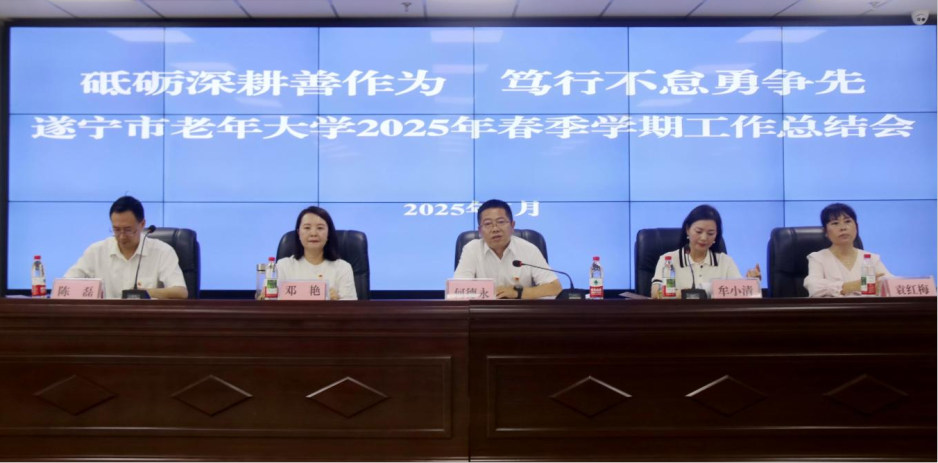 6月27日,遂宁市老年大学组织召开“砥砺深耕善作为 笃行不怠勇争先”2025年春季学期工作总结会。市民政局党组成员、副局长何德永出席会议并讲话。学校全体教职员工、分校及教学辅导站负责人、老年学员代表共180人参加会议。