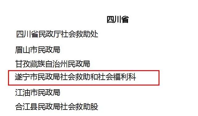 其中,遂宁市民政局社会救助和社会福利科在列。