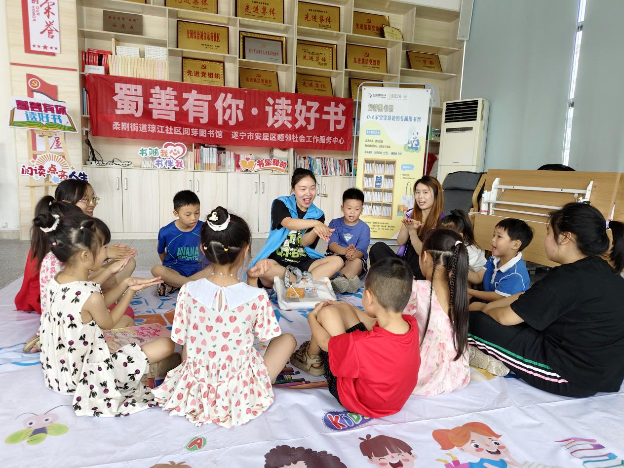 2023年12月,“蜀善有你·读好书”四川省阅芽计划遂宁启动,同步建成10个“阅芽图书馆”,汇集各类绘本1600余册,由社区工作者、社会工作者和来自学校、家庭的志愿者引导开展儿童公益阅读。截至目前,全市累计服务人数3318人,借阅人数1728人,借阅人次4380人次。10个“阅芽图书馆”均被评为“蜀善有你·读好书”四川省阅芽计划第一期领航点位。