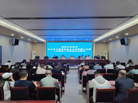 6月5日上午,市民政局召开全局干部职工大会,传达学习“射洪市对标跨越行动暨‘八区’建设工作推进会”。局党组书记、局长王灿主持会议并讲话。局机关全体干部职工、下属单位负责同志参加会议。
