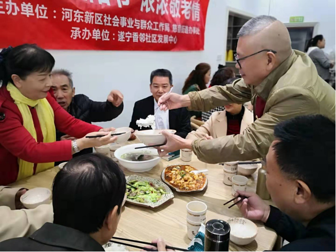 重阳节期间,由河东新区社会事业与群众工作局主办,联合街道办事处和管理办公室,凝聚社会组织力量共同开展重阳节系列活动20场次,服务河东新区老年人万余人,以慰问、联欢、为老年人服务等多种方式让老年人度过温暖和谐的重阳佳节。