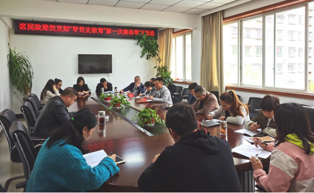 近日,安居区民政局党支部组织全体党员干部开展了党史学习教育第一次集中学习活动,活动由区社会福利中心主任、党组成员李伟主持。