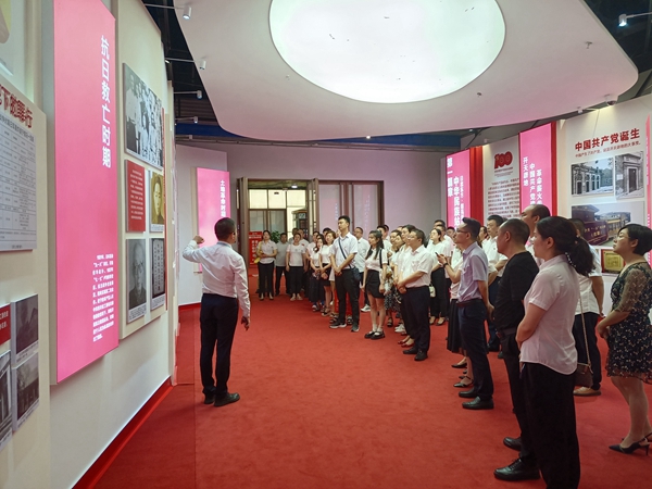 首先,党员同志们参观了遂宁市庆祝建党100周年主题展览。展览以“伟大历程、辉煌成就”为主题,分为“中华民族站起来——日出东方 照亮遂宁”“中华民族富起来——改革开放 春到遂宁”“中华民族强起来——伟大复兴 腾飞遂宁”3个部分及记录小康工程、记录绿色发展、记录城市建设、记录门户枢纽、记录全面从严治党5个专题。大家边走边看边听,时而沉思、时而讨论、时而感叹,直观的感受到党在不同历史时期团结带领中国人民取得的伟大成就、遂宁发生的巨大变化,更加坚定了理想信念,增强了奋进新时代、迈步新征程的信心和决心。