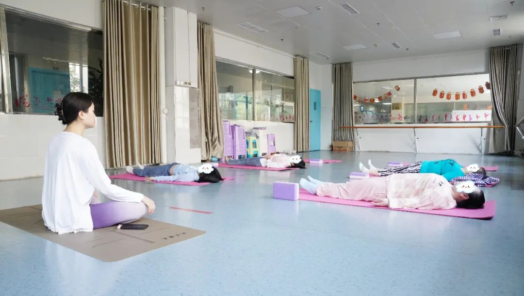 来自精神康复病区、心身医学科的康复员们结合自身条件和兴趣爱好,在舒缓的背景音乐下,跟着康复老师一起练瑜伽。