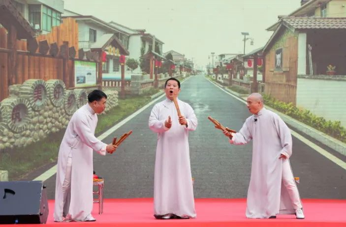 活动现场还进行了精彩的文艺展演,四川盘子《春光好》、二胡齐奏《风舞绿洲》、快板《升国旗》、四川清音《古蜀风流》等节目赢得群众一轮又一轮喝彩。