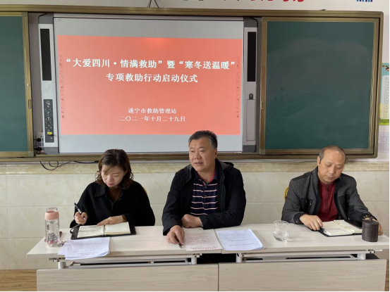 今日(29)上午,遂宁市救助管理站举行“大爱四川·情满救助”暨“2021寒冬送温暖”专项救助行动启动仪式。启动仪式上,遂宁市救助管理站站长吴宏权作安排部署并宣布专项救助行动正式启动。