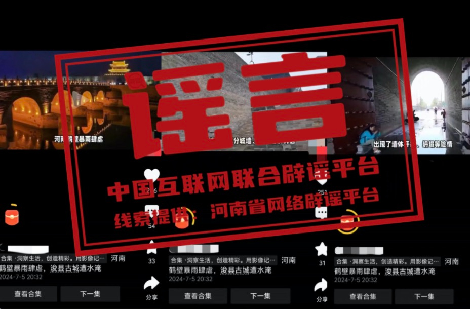 真相:近日,有网民在网络平台发布内容为“河南鹤壁暴雨肆虐,浚县古城遭水淹”的视频信息,引发社会关注。经核实,7月5日浚县出现暴雨天气,强降雨期间浚县古城北大街、东城门广场等处出现积水情况,经过积极排涝,雨停后路面积水很快被排空,恢复正常通行,不存在视频中所说的“古城风貌受损严重”“古城内的部分城墙、古街巷出现不同程度的损毁”“古城墙出现了墙体开裂、坍塌等险情”“古城内的博物馆、纪念馆等文化设施也遭受不同程度的损失”等现象。该视频多为当地旧闻及外地视频嫁接拼凑。目前,浚县古城秩序正常。(来源:河南省网络辟谣平台、浚县古城保护建设服务中心)