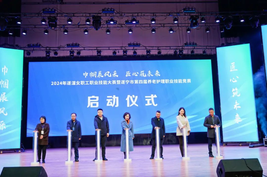 11月25日-26日,由四川省总工会、省民政厅、省商务厅、省妇联指导,遂宁市总工会、市民政局、市妇联、市商务局、市人社局和重庆市潼南区总工会、民政局、商务委员会、妇联联合主办,四川职业技术学院、遂宁市河东新区总工会、遂宁市社会福利院、遂宁市数字家政服务产业园共同承办的“巾帼展风采 匠心筑未来”—2024年遂潼女职工职业技能大赛暨遂宁市第四届养老护理职业技能竞赛在遂宁圆满举行。省总工会二级巡视员孙家洪出席开幕式并讲话,省民政厅二级巡视员周志军、省妇联妇女发展部部长侯雪轶出席活动,遂宁市委常委、宣传部部长、市总工会主席涂虹出席开幕式并致辞。