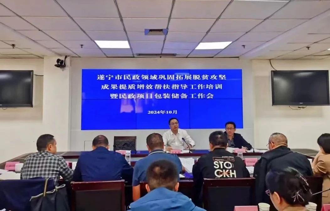 10月23日,遂宁市民政局召开巩固拓展脱贫攻坚成果提质增效帮扶指导工作培训会暨民政项目储备工作培训会,传达学习习近平总书记近期关于“三农”工作的重要指示精神和全省乡村振兴重点任务工作推进会精神、市委农村工作领导小组第三次全体会议精神,分析了当前工作存在的问题及面临形势,对近期重点工作进行了再安排再部署。遂宁市民政局党组书记、局长赵维强出席会议并讲话。市民政局党组成员、副局长彭军主持会议。