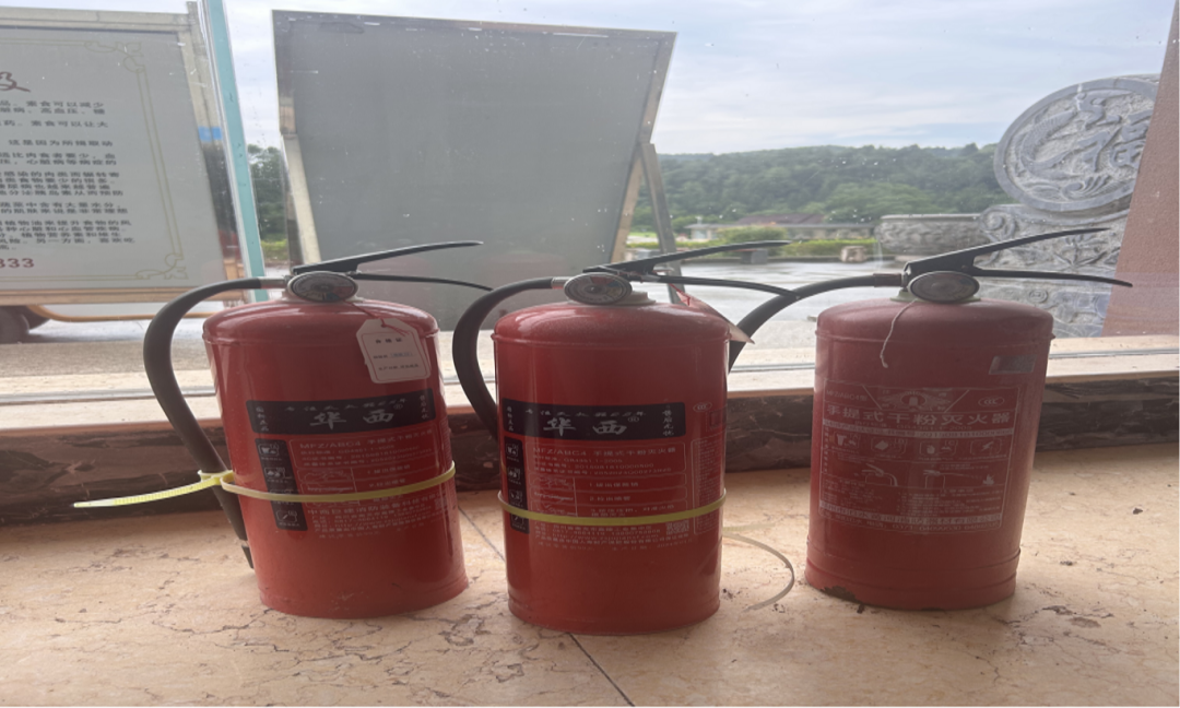 存在问题:1具灭火器压力超压,2具灭火器失效。