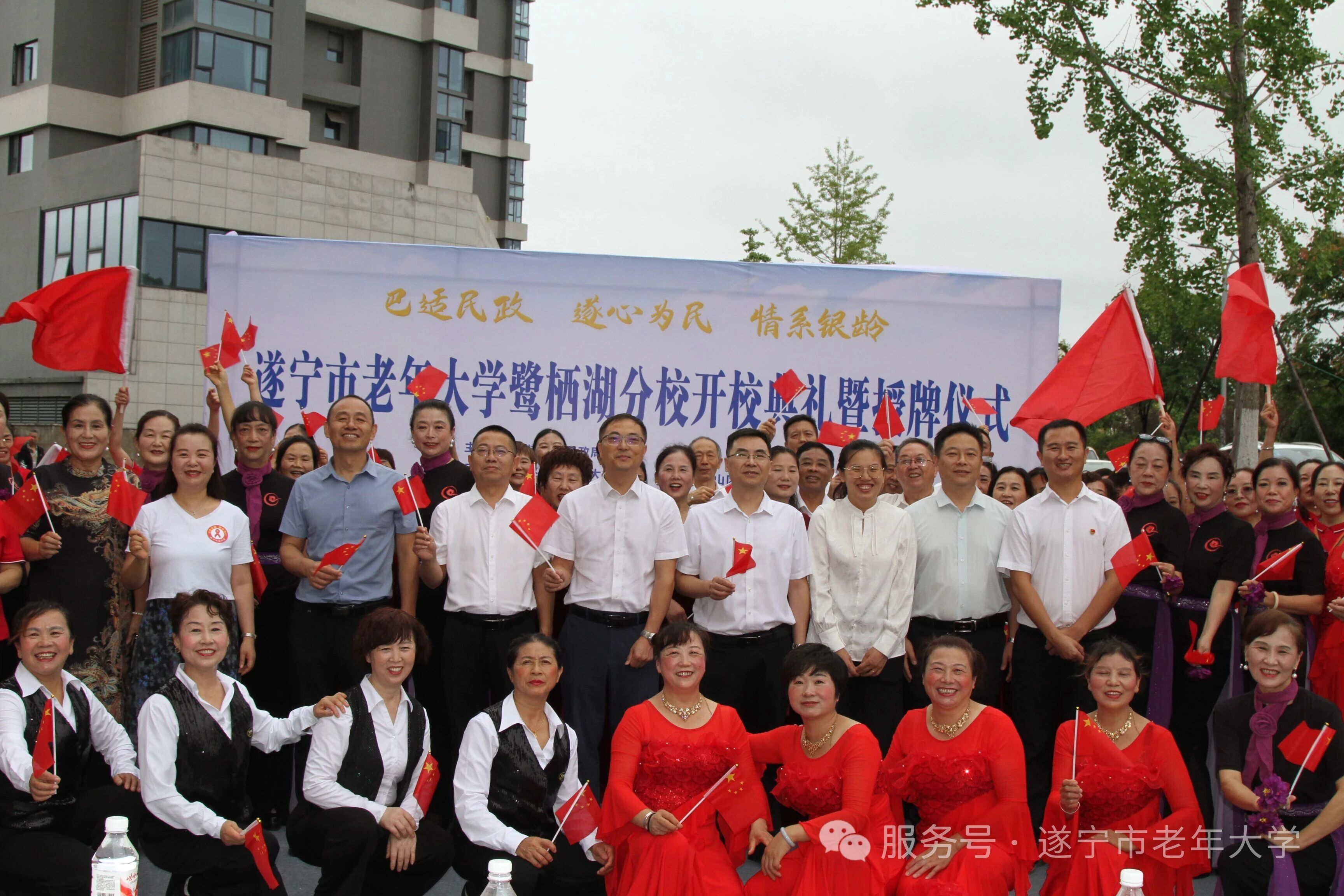 赵维强同志为遂宁市老年大学鹭栖湖分校授牌,标志着鹭栖湖分校正式成立。这既是遂宁市深入贯彻落实习近平总书记关于老龄工作的重要指示批示精神,积极推动全市老年教育事业高质量发展决策部署的具体行动,更是完善城乡老年教育服务网络、建设老龄友好型社会的重要内容。