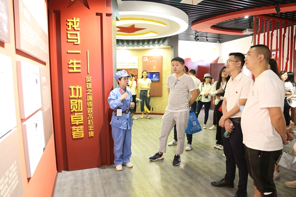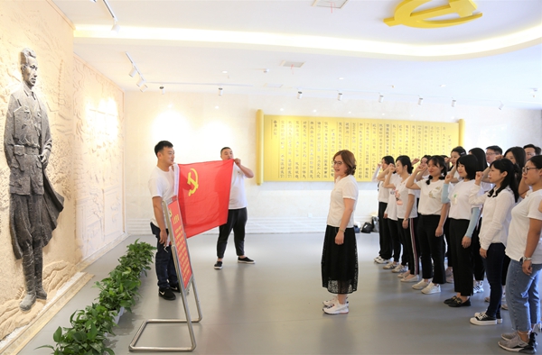 在纪念馆的旷继勋雕像前,党员们举行重温入党誓词宣誓仪式,大家面对鲜红的党旗庄严宣誓,进一步强化党章意识、增强党性修养。
