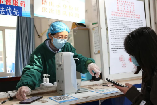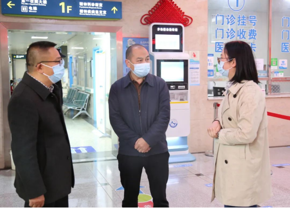 市民政局党组成员、副局长,市民康医院党总支书记罗鸿云(中)深入预检分诊、门诊等区域指导医院疫情防控工作。
