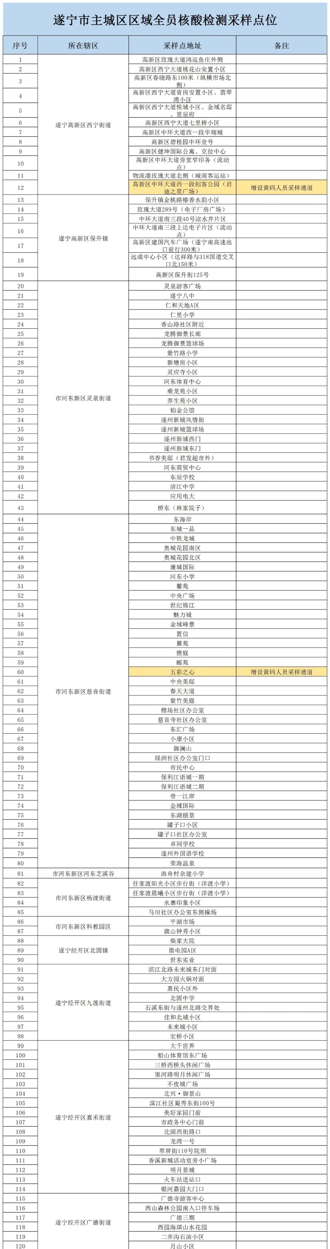 (一)安居区、射洪市、蓬溪县、大英县采样点位见当地应急指挥部发布的通知或通告,市主城区采样点位见附件。