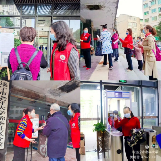 “陌上花渐开,希望次第来”。4月18日,遂宁市老年大学又恢复了往日的热闹。学员们戴好口罩、带着书本元气满满地出现在了校门口,有序跨进校园。“请您带好口罩、请您测试体温、请您保持一米距离、请您出示健康码、行程码、请您持48小时核酸检测报告。”早上8:10分,学校领导、工作人员提前来到学校,用心为学员们服务,呈现出有序、温馨、和谐的氛围。