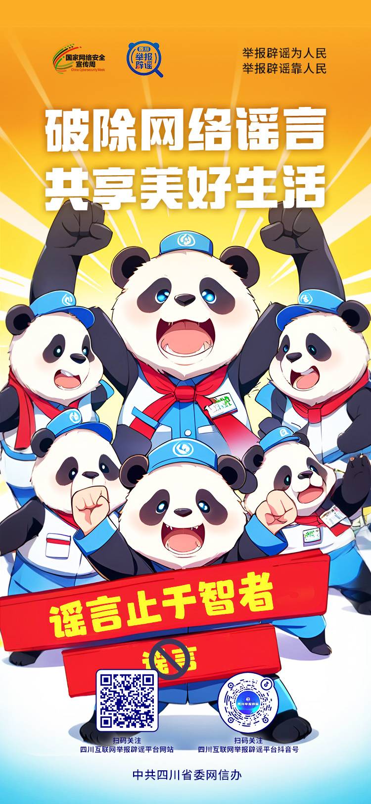四川互联网举报辟谣平台联合封面新闻特别推出一组AIGC海报