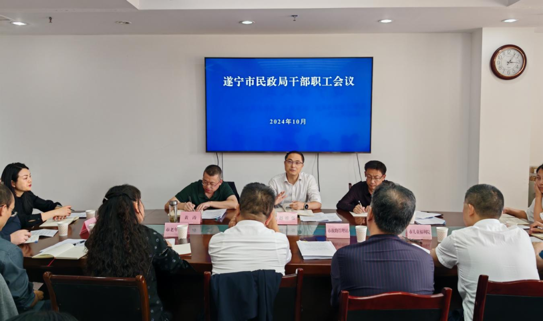 10月18日,遂宁市民政局召开干部职工会议,传达学习习近平总书记给“银龄行动”老年志愿者代表回信以及习近平总书记重要讲话重要指示精神,研究我局贯彻落实意见。市民政局党组书记、局长赵维强出席会议并讲话。