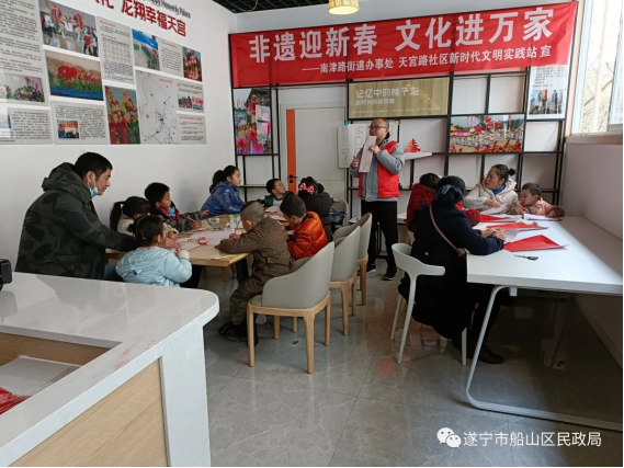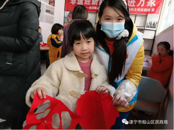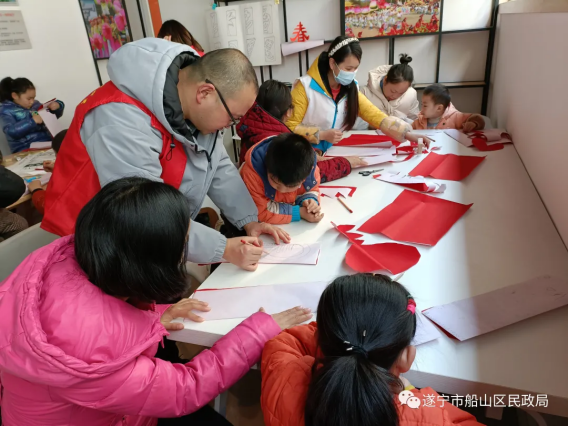 近日,为丰富城市儿童假期生活,弘扬传承剪纸文化,在船山区民政局及南津路街道办事处的关心支持下,众悦社工与志愿者来到南津路街道天宫路社区,开展“剪纸迎新春·文化进社区”城市儿童关爱活动。此次活动特邀遂宁非物质文化遗产“胡氏剪纸”传承人胡宁老师为孩子们授课,约20名儿童及监护人参加了此次活动。