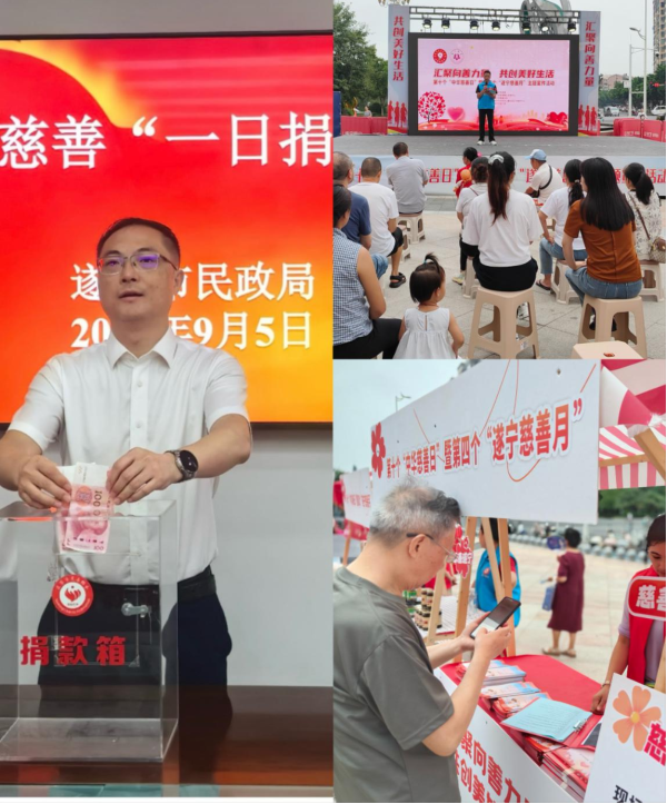 9月5日,遂宁市民政局举办第十个“中华慈善日”宣传暨慈善文化“五进”活动。市民政局党组书记、局长赵维强带头义捐。