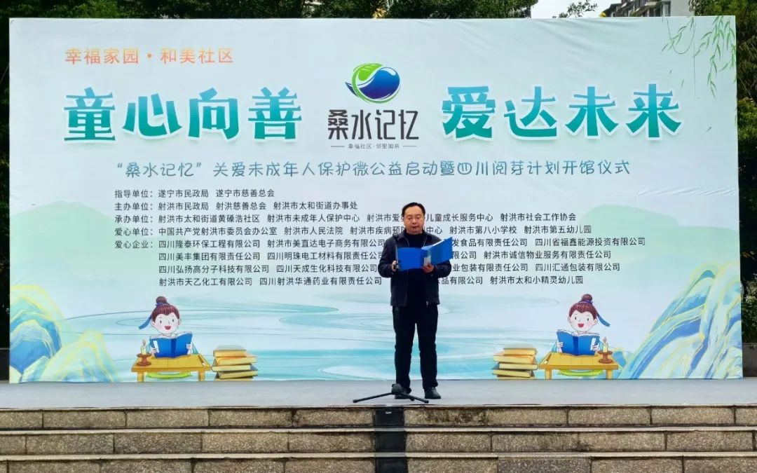 1月19日,射洪市“桑水记忆”关爱未成年人保护微公益项目暨四川阅芽计划启动仪式在射洪市未来广场举行,遂宁市民政局党组成员、副局长田贵凡出席活动并讲话。启动仪式结束后,田贵凡带队就慈善事业高质量发展工作在射洪、大英开展调研。