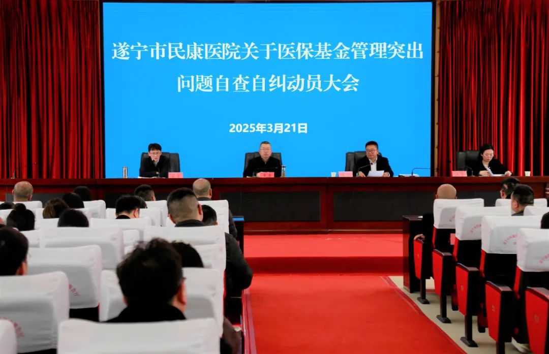 为进一步规范医疗服务行为,强化医保基金的管理与使用,确保医保基金安全运行。3月21日下午,遂宁市第六人民医院召开医保基金管理突出问题自查自纠动员会,传达学习我市近期医保基金监管工作相关会议精神,专题安排部署下阶段工作。院领导班子,中层干部、医师(含医技部门)护士长、总办护士、业务骨干等参加了会议。